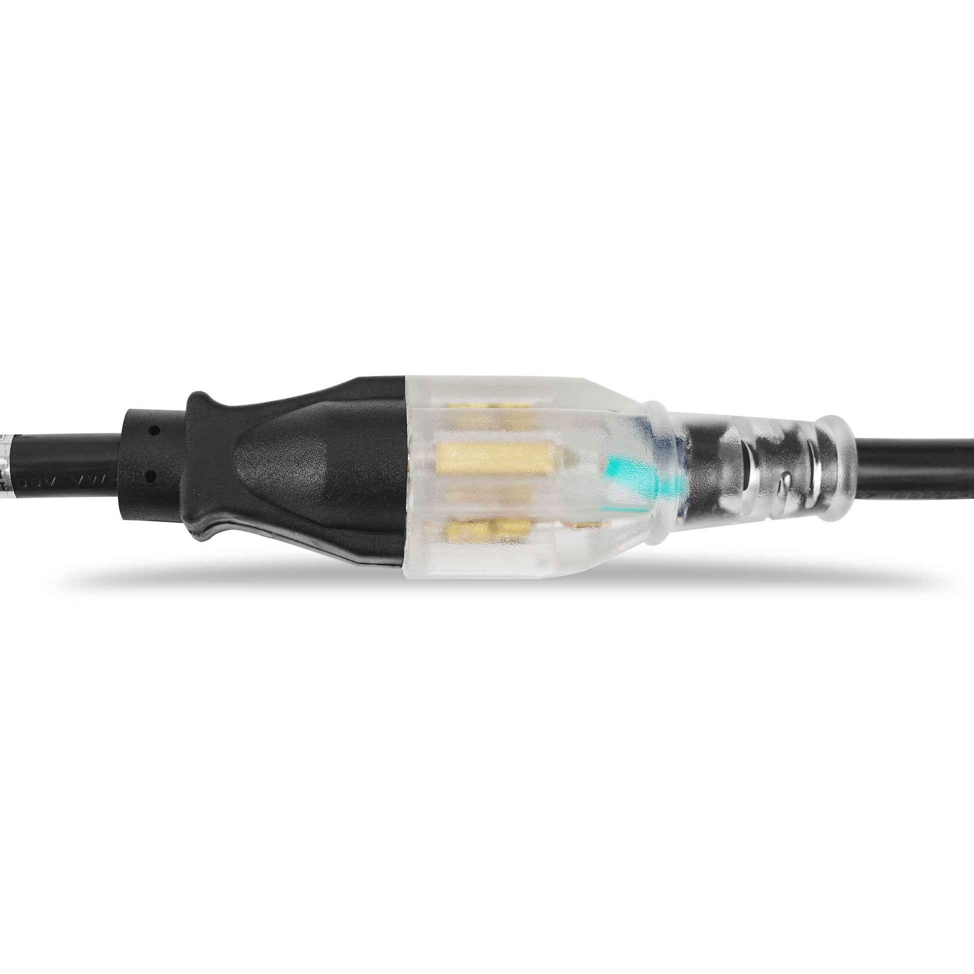 - 3 prong 20 amp T-Blade Style straight blade, Male end (Plug): NEMA 5-20P, Female End: NEMA 5-20R, 125/250 volts.The plugs are wtist locking design with the L14-30 lock structure. Avoiding falling off due to weather conditions or man-made accidents.